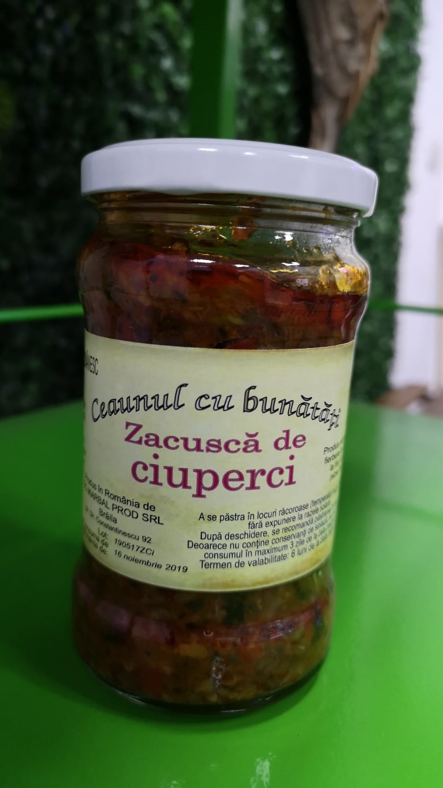 Ingrediente: ciuperci Champignon, ardei capia, ceapa, suc de rosii, ulei, morcov, telina, pastarnac, sare neiodata, usturoi, boia dulce, piper, oregano, maghiran, busuioc, boia iute.
